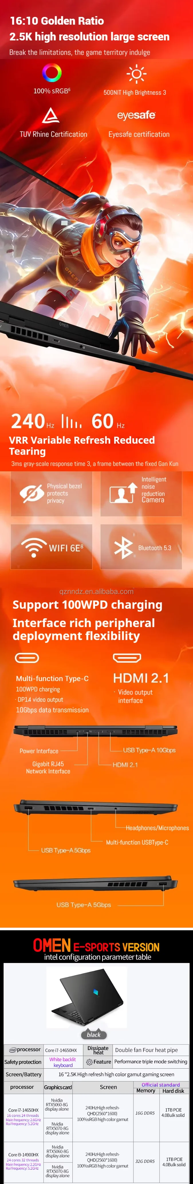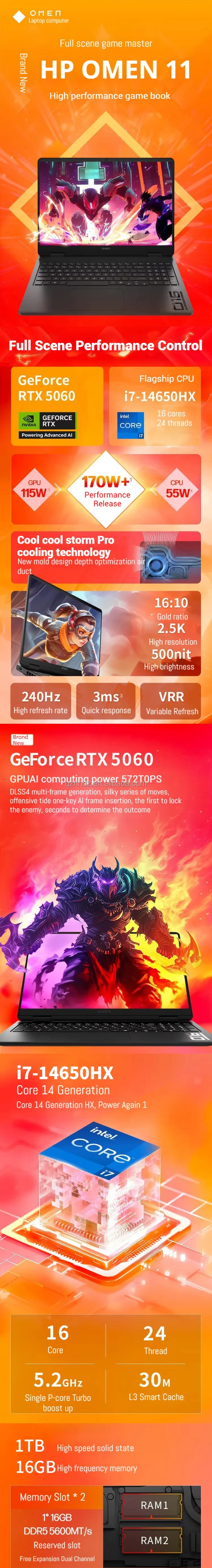 New Arrival HP OMEN 16 2025 Gaming Laptop 16-inch 2.5K 240Hz Display I9-14900HX+RTX5070 Ultra High Performance Gaming Laptop