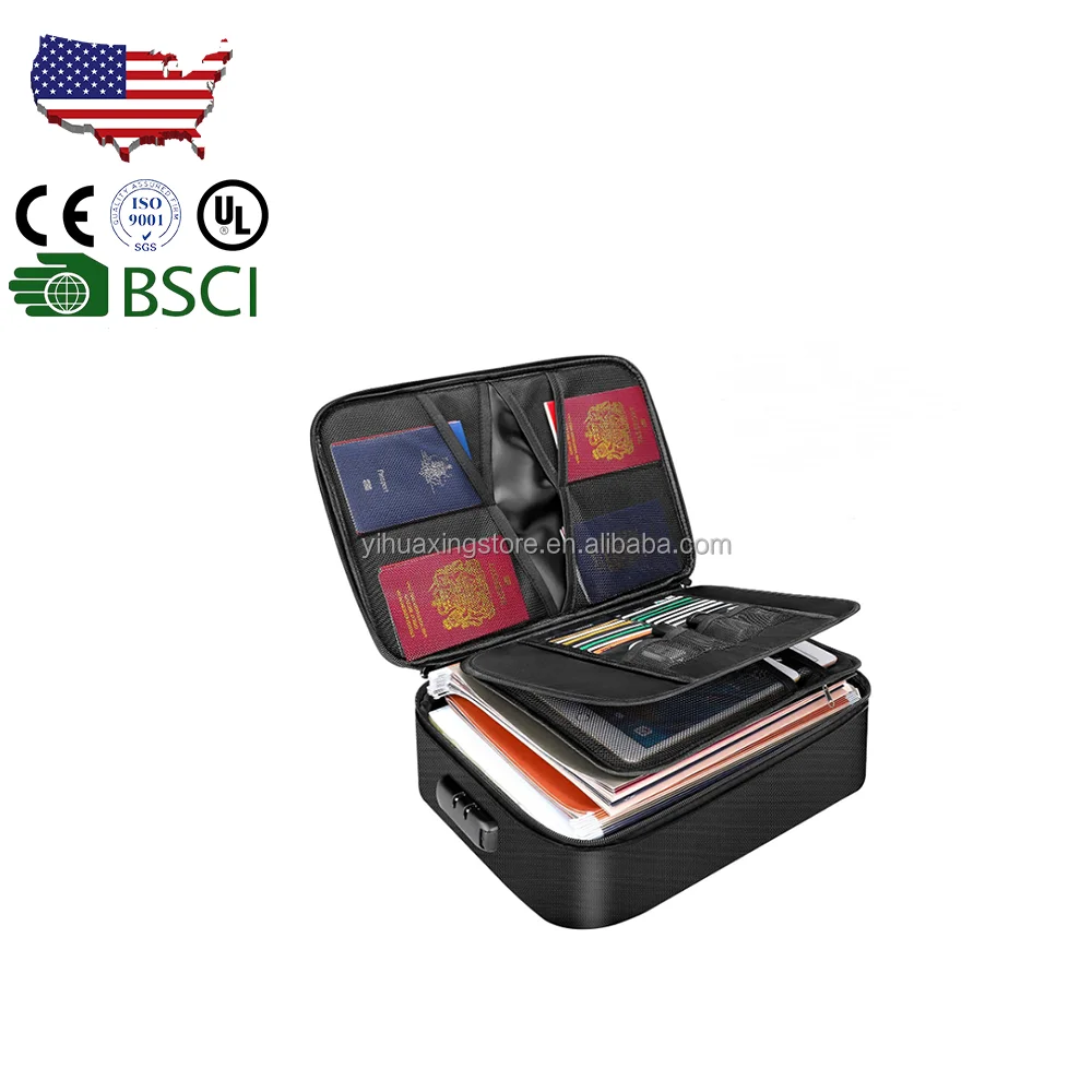 Overseas stock Certificate Holder Office Home Security Storage Fireproof Money Lock Organizer Fireproof Document Bag