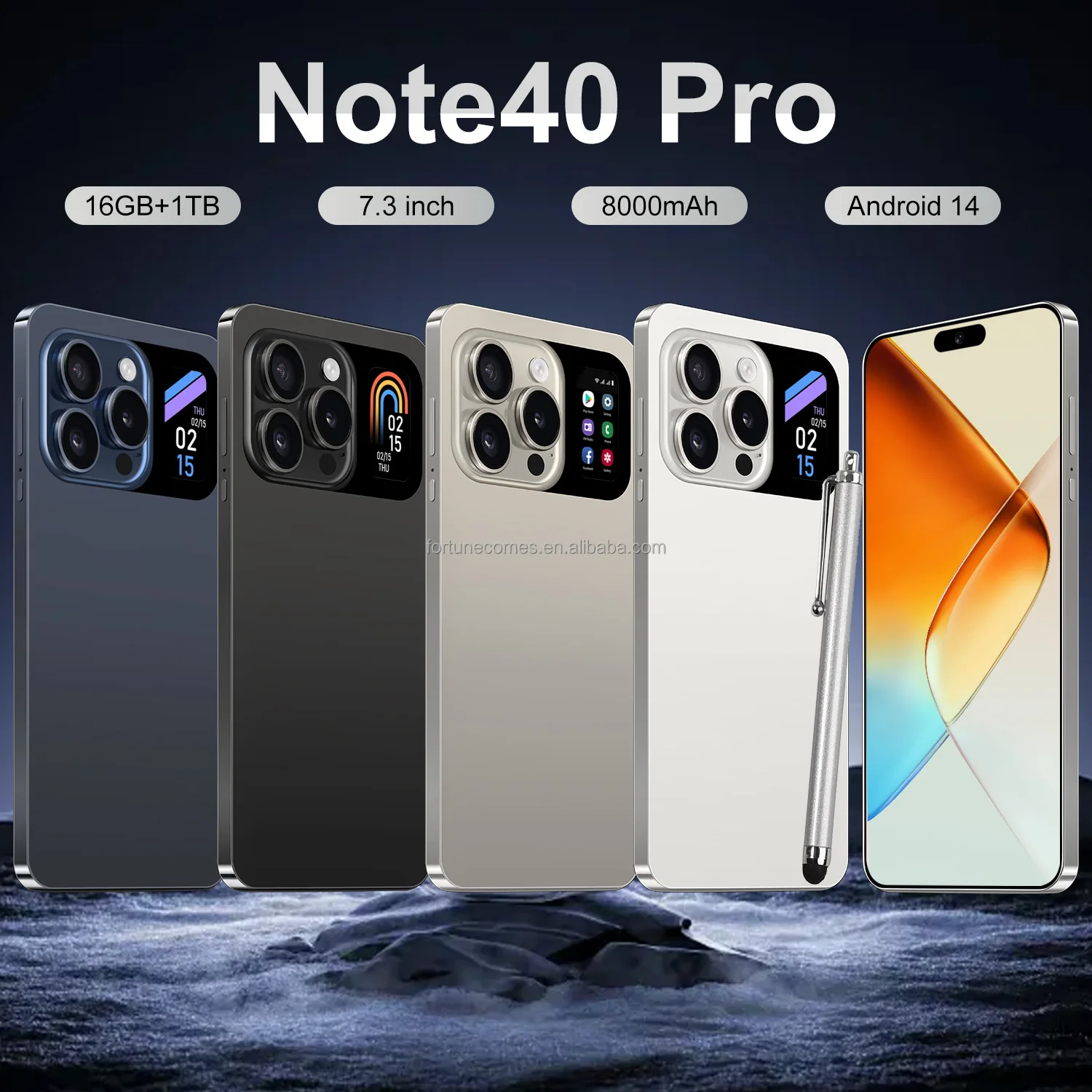Popular Note40 Pro Android System Smartphone HD Screen 16G+1TB 4000mAh Face Unlock Quality Phones French German Spanish English