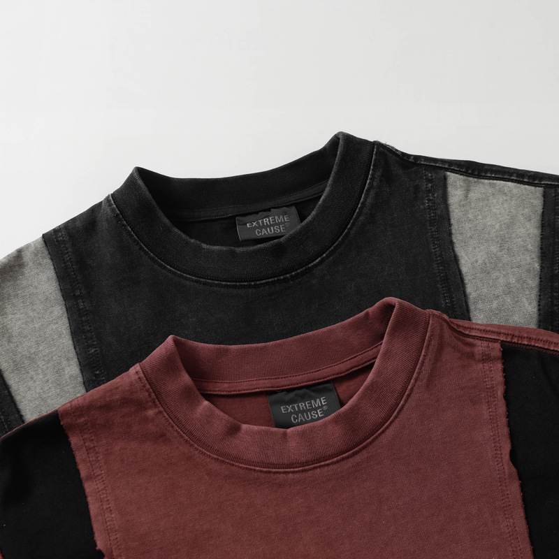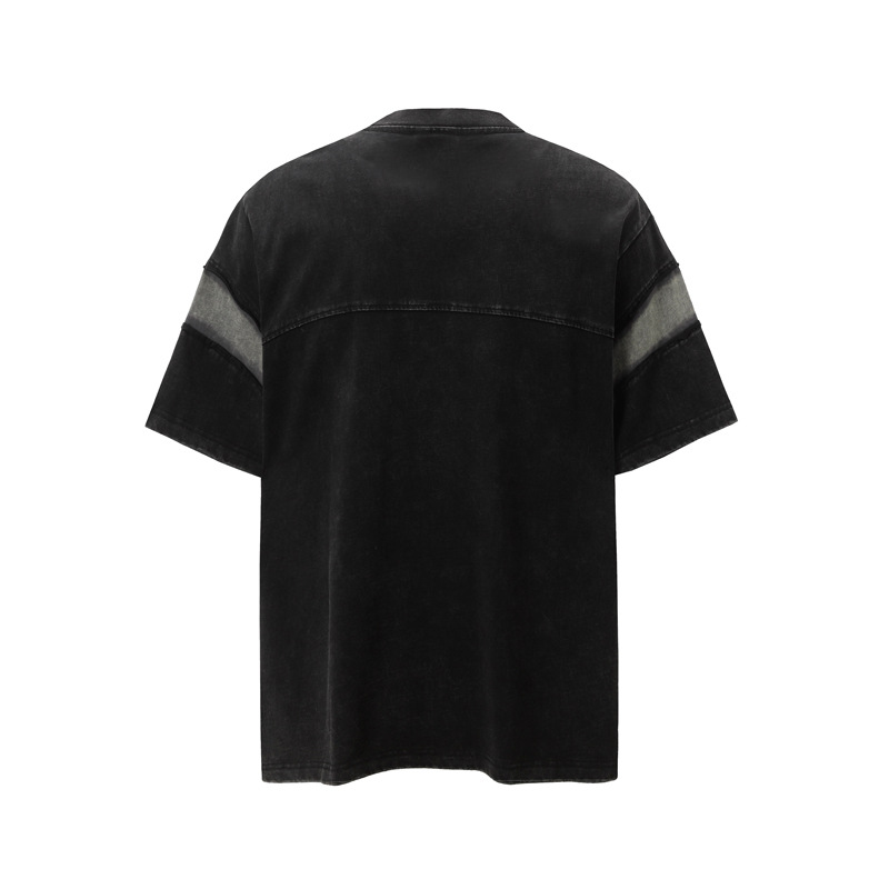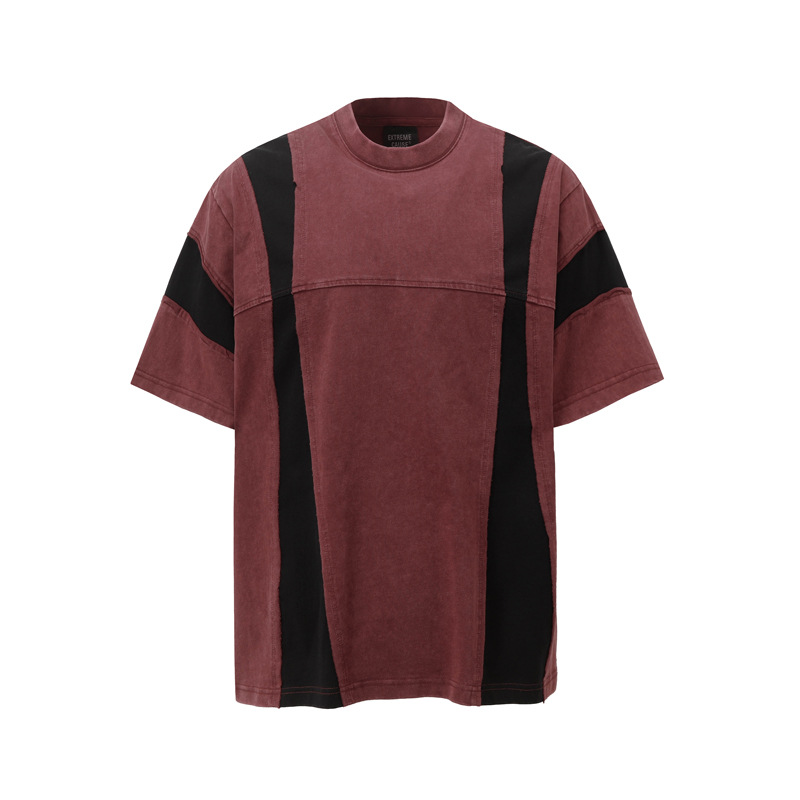 Retro Washed Distressed Short Sleeve Men's Stitching Contrast Color