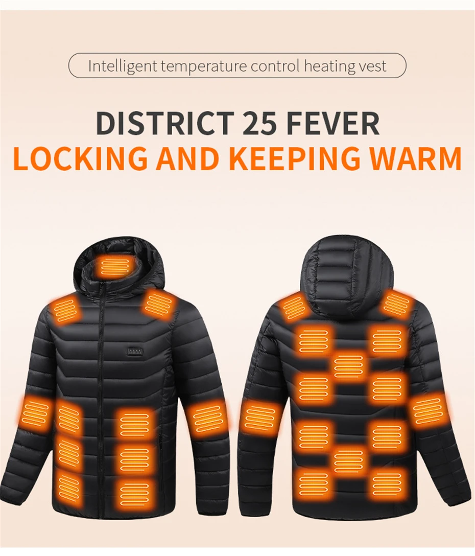 USB Heating Jackets Men Winter Warm Heated Parkas 35 Zones Electric Heated Jackets Warm Padded Jacket Coat Plus Size 5XL