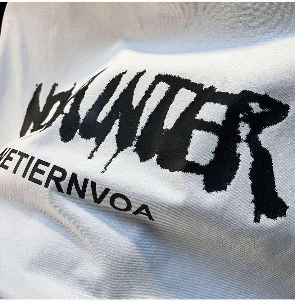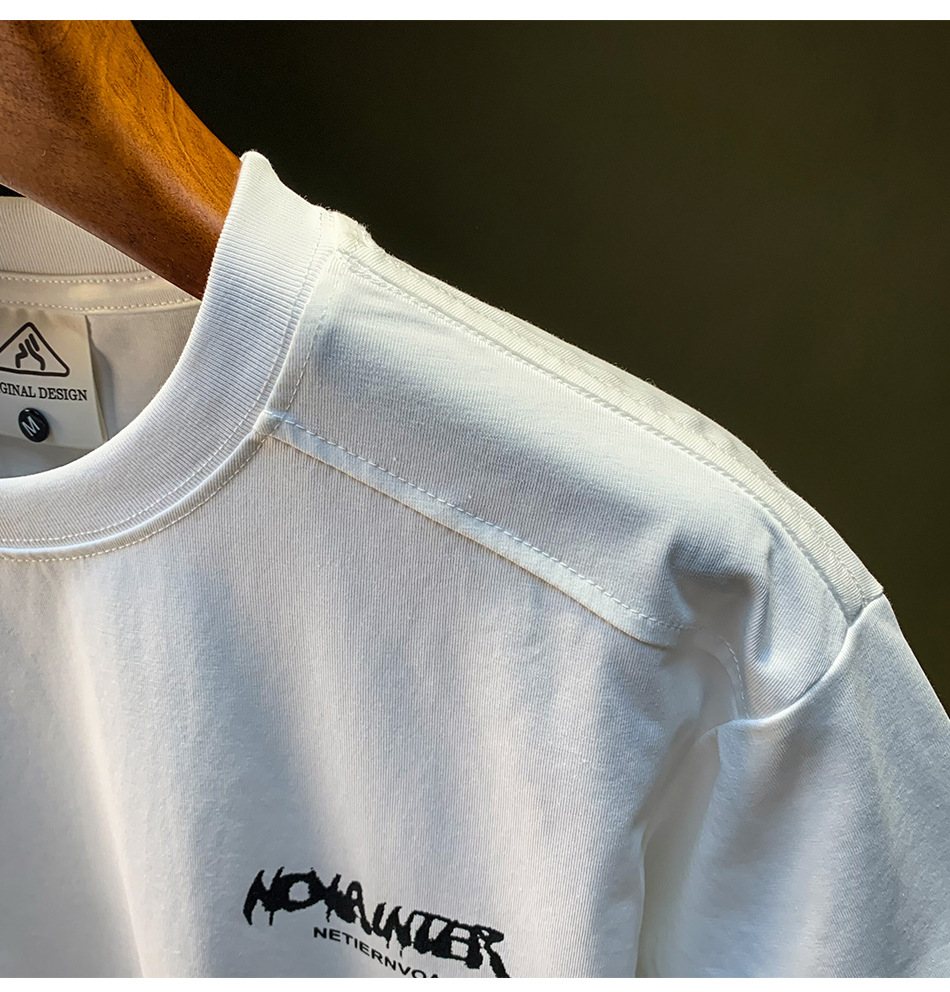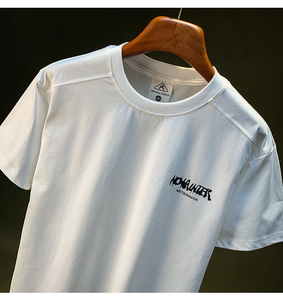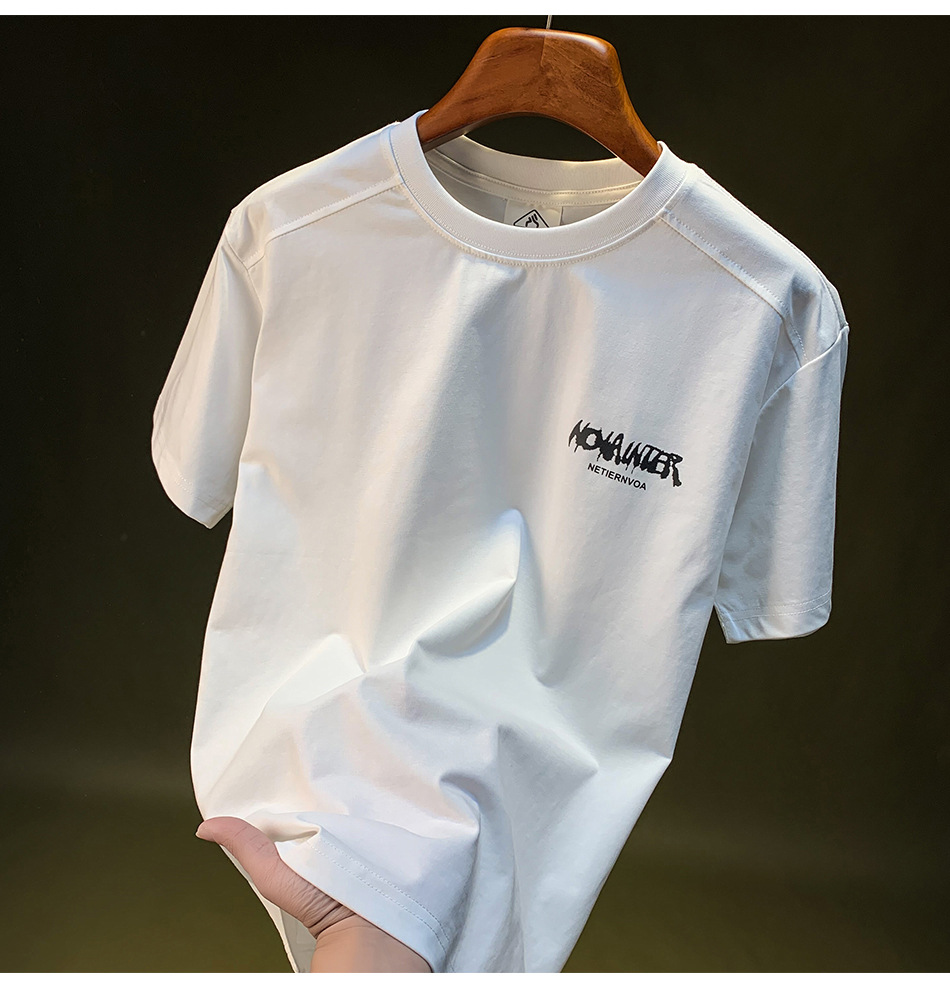 White With Printed Pattern Short-sleeved T-shirt Men's Thin Breathable