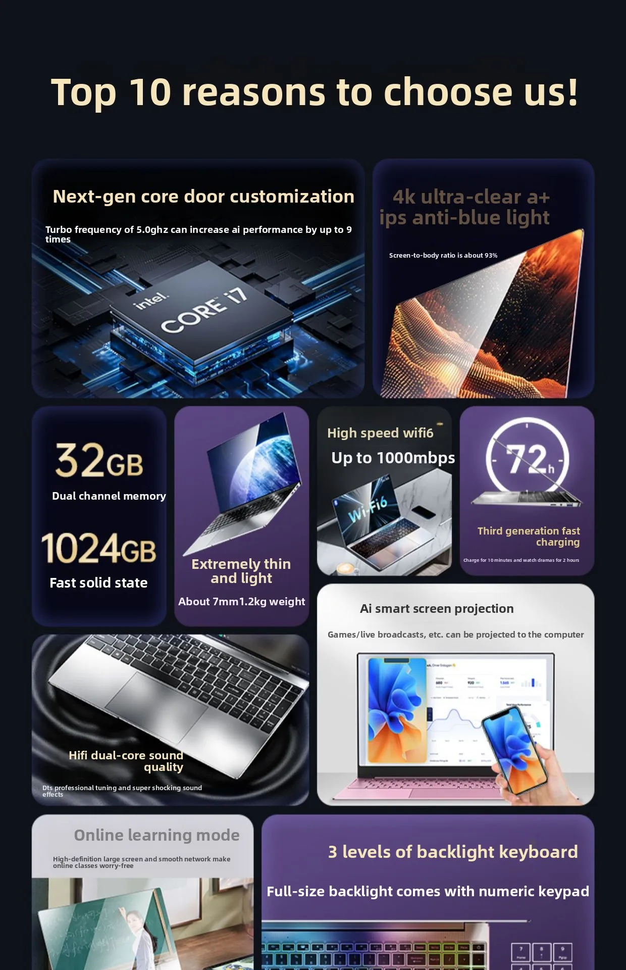 Wholesale Intel Core-i7 Notebook 15.6'' Win11 16+512GB Laptop Cheap Computers Laptops and Desktops for Gaming Office Business