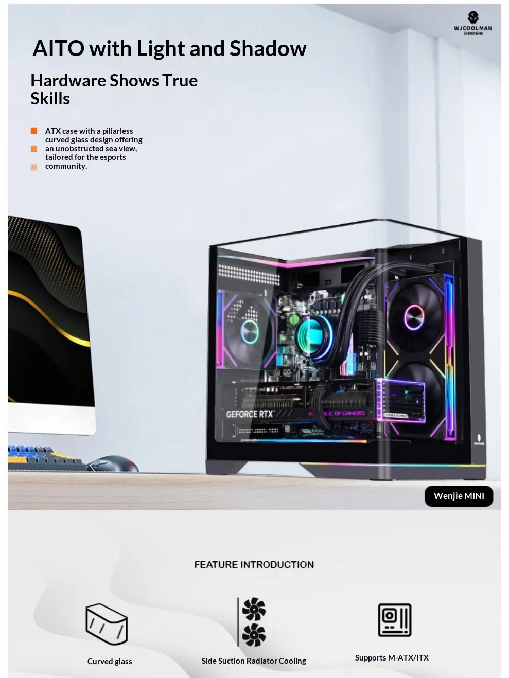 WJCOOLMAN WENJIE MINI three-sided side-lit integrated curved glass sea-view gaming case with ARGB lighting strip