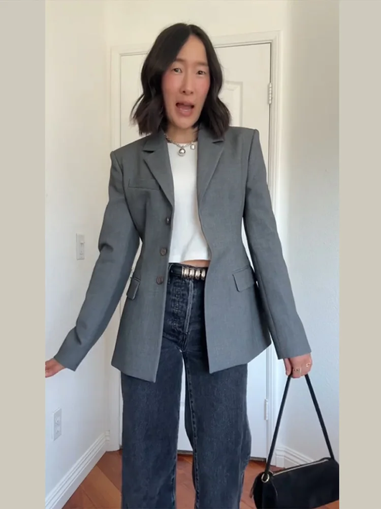 Women's Jacket New Outerwear V-Neck Three-Button Blazer Woman Tailored Formal Outerwears Waist Cincher Suit Woman Clothes Wear