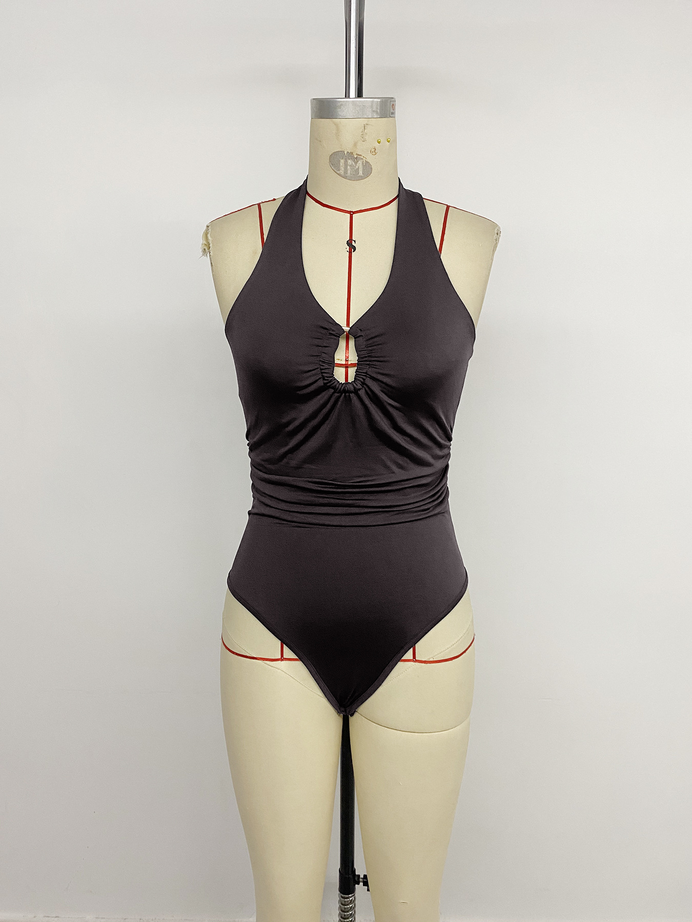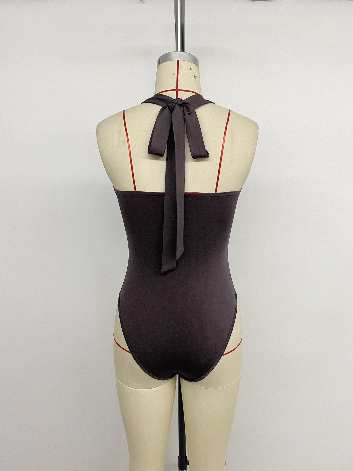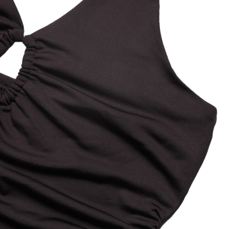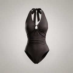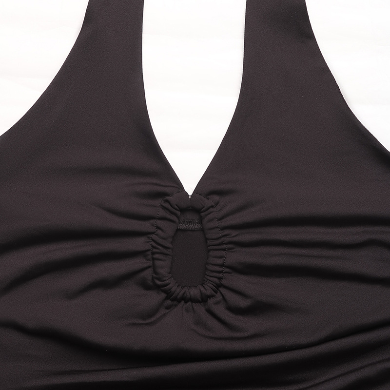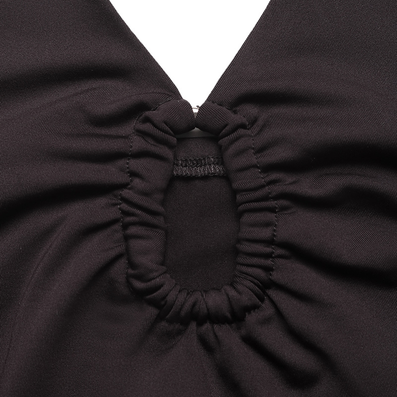 Womens Sexy Deep V-Neck Sleeveless Bodysuit With Tight Fit And Halter Neck Design