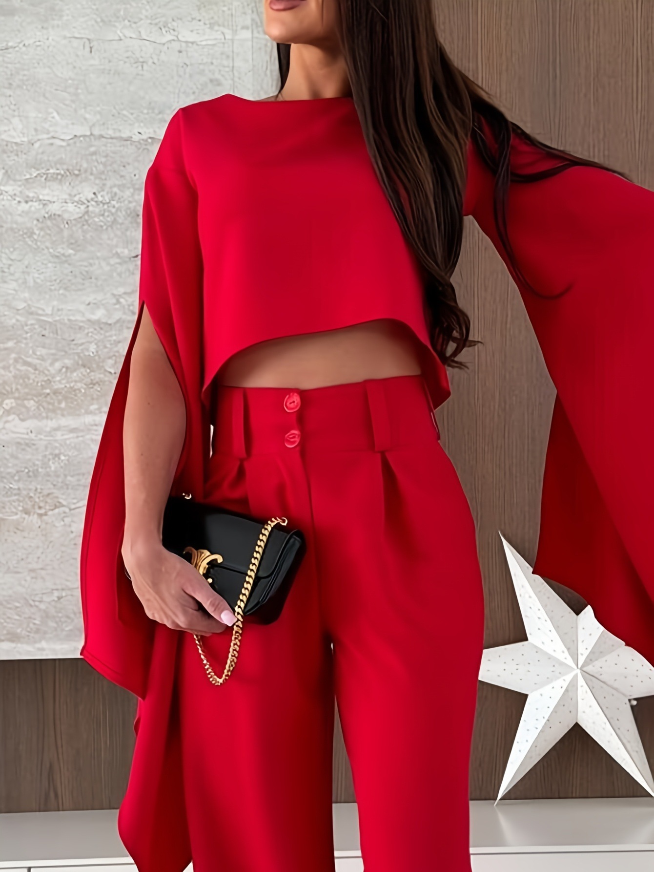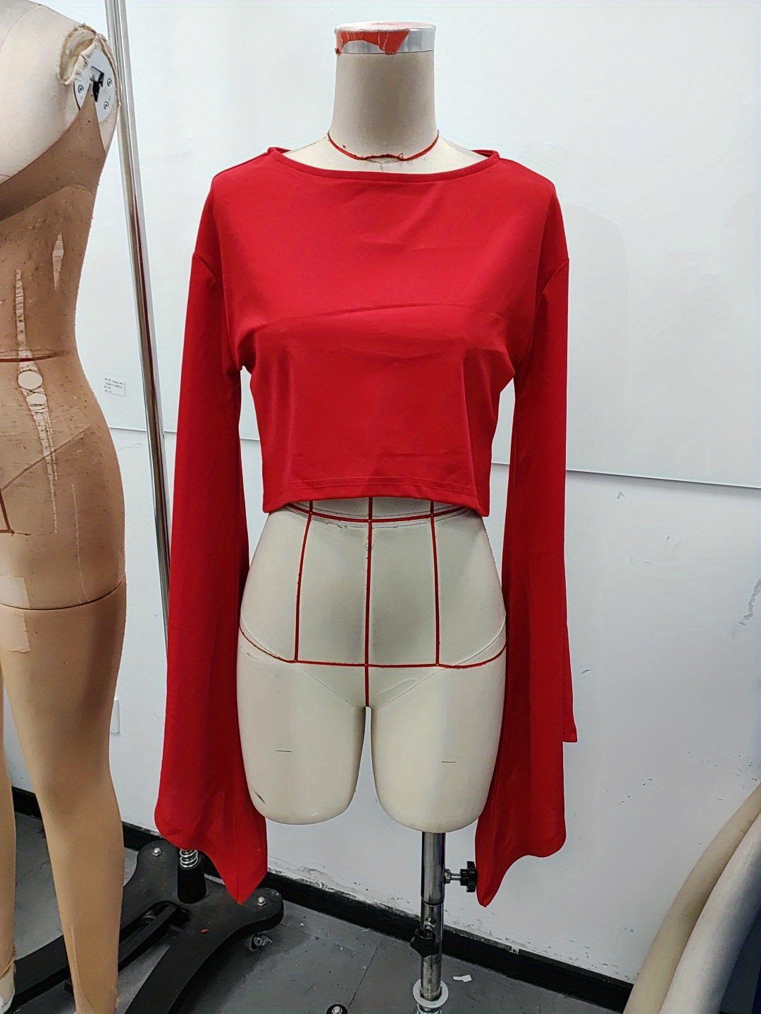 Womens Solid Color Casual Flare Sleeve T Shirt Single Piece Set