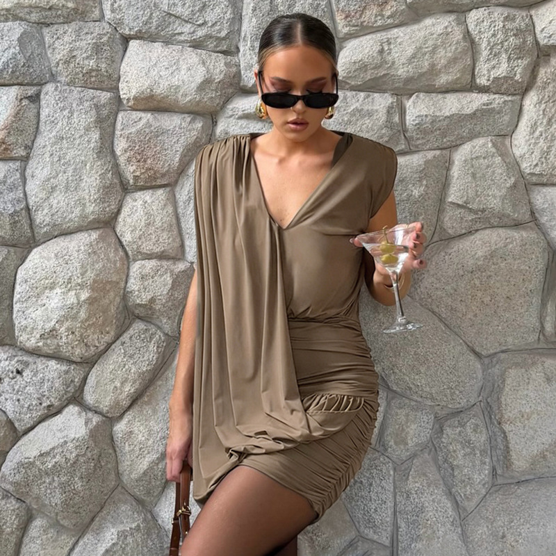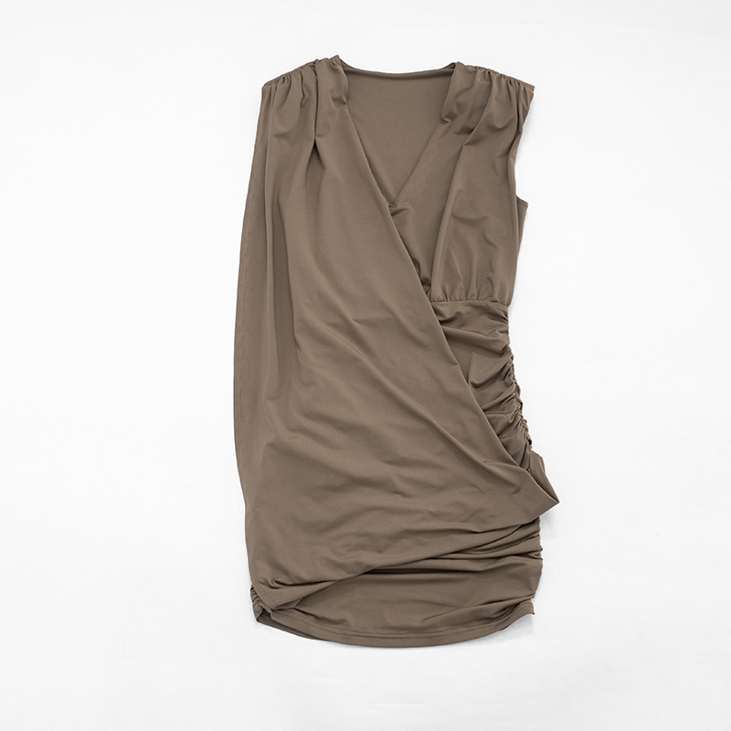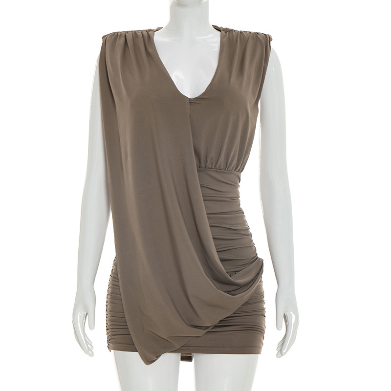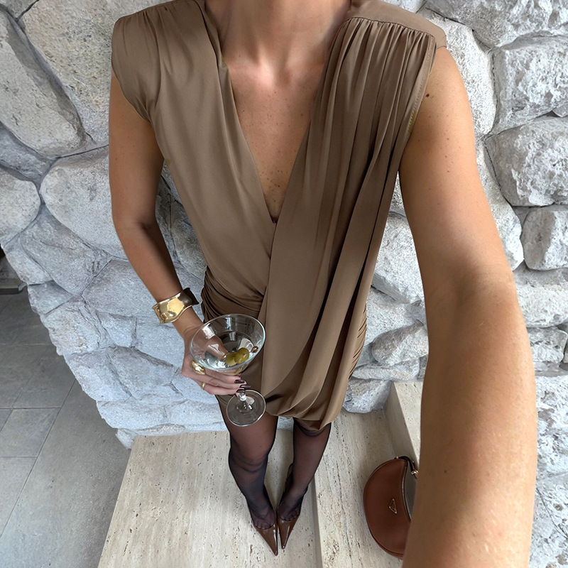 Designer Deep V-Neck Sleeveless Pleated Dress For Women