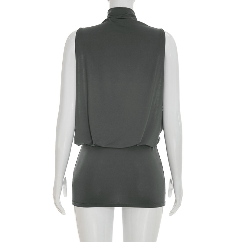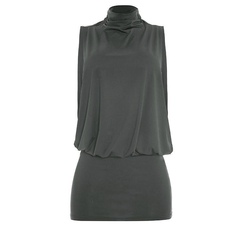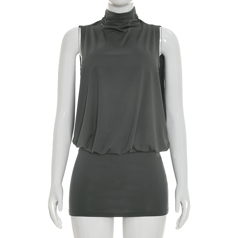 Simple And Elegant Sleeveless Turtleneck Mini Dress For Women