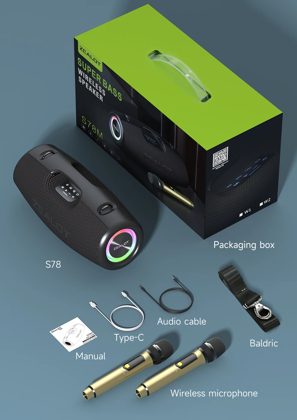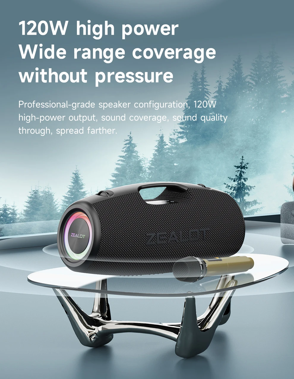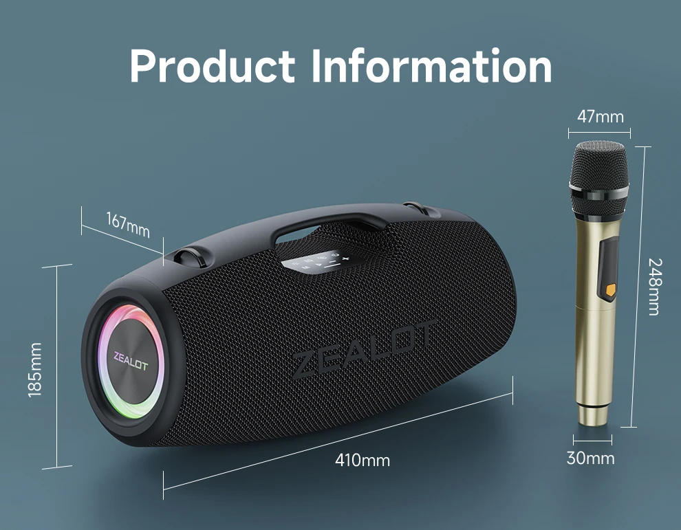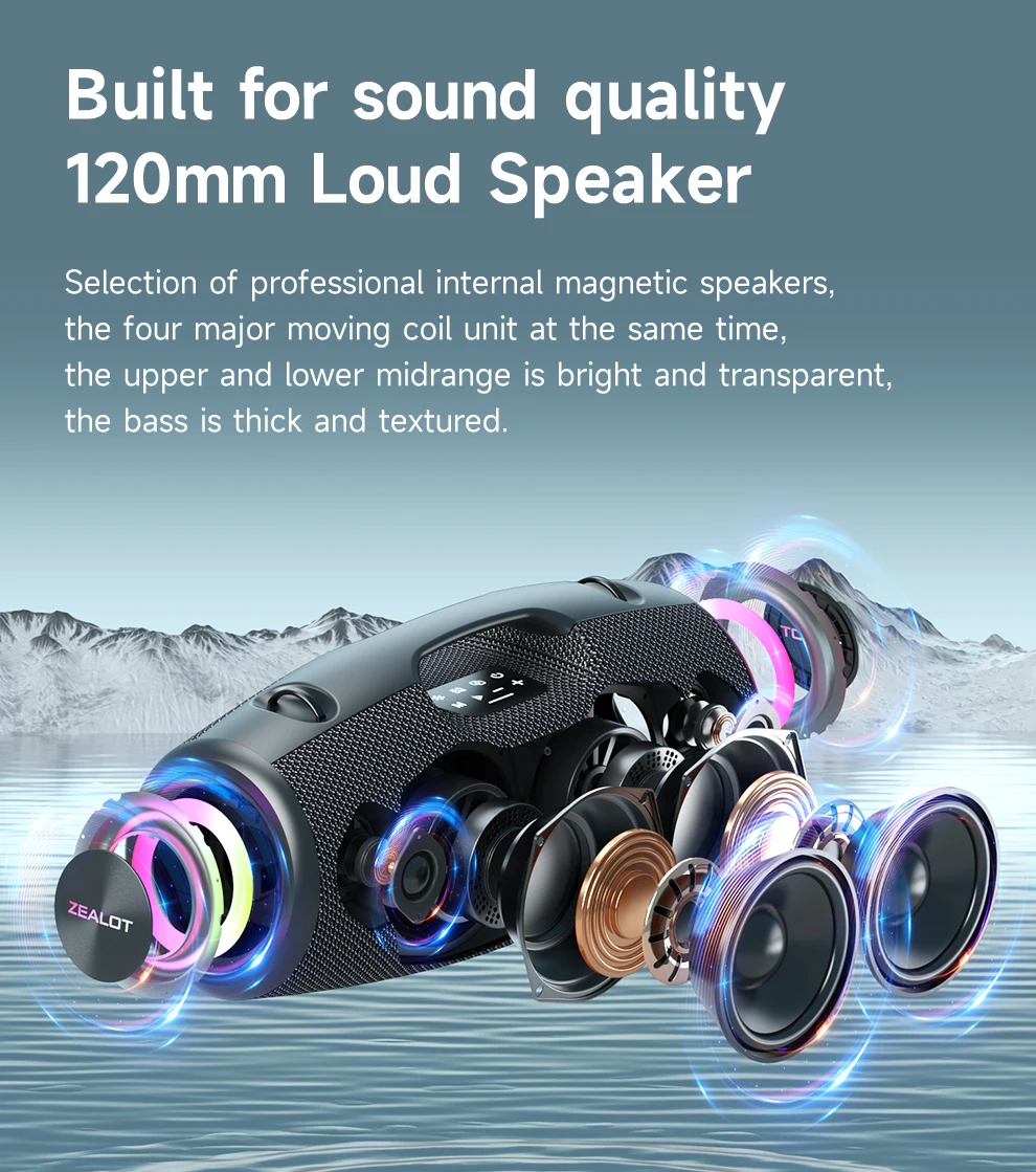 Caixa de Som Portátil para Ambientes Externos ZEALOT S78 com Microfone Sem Fio, 120W, À Prova D'água, Karaokê/Power Bank/TF/AUX/EQ/USB