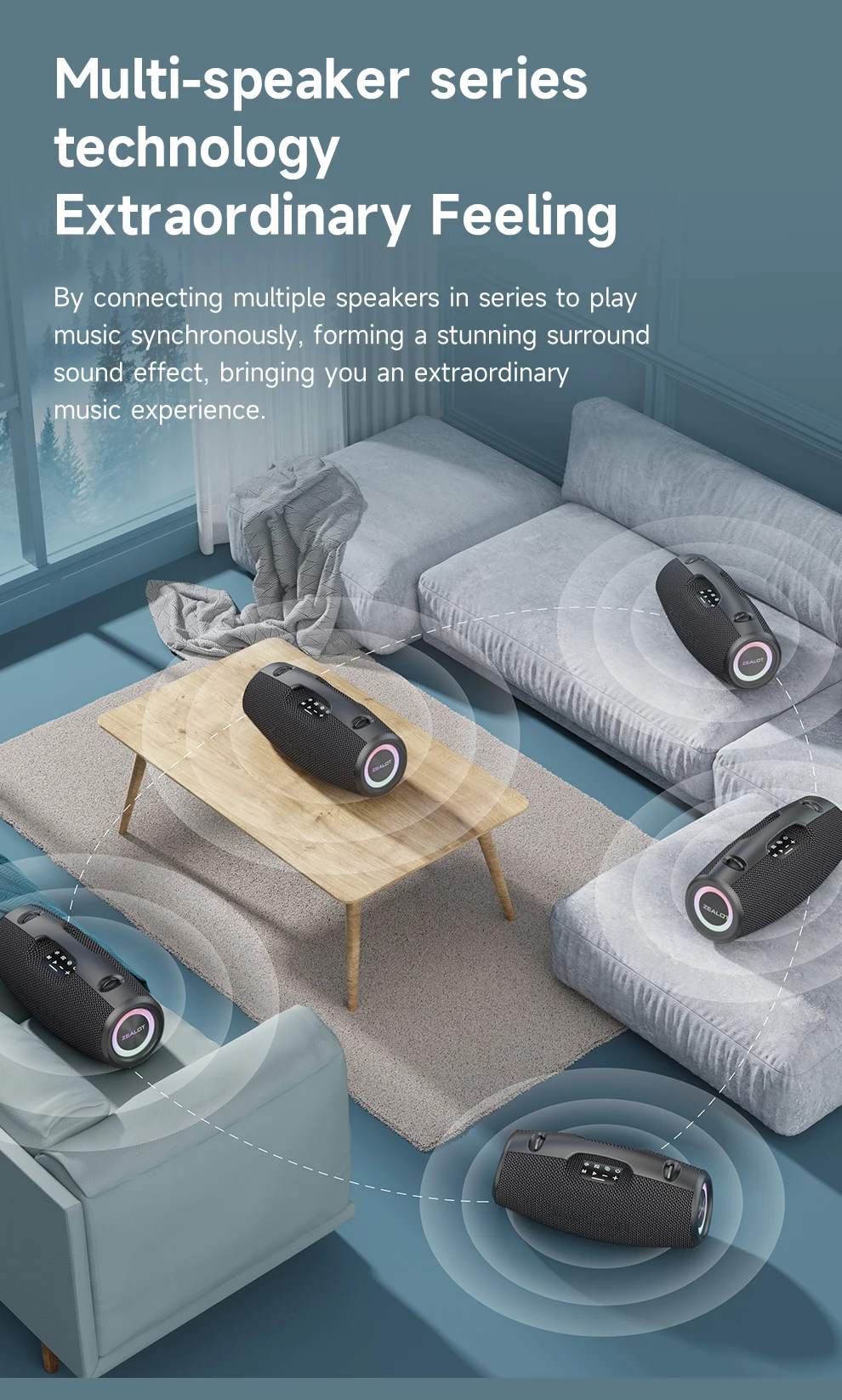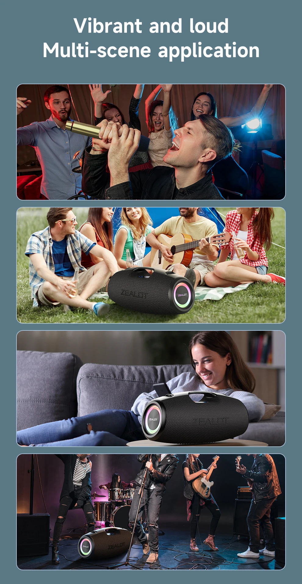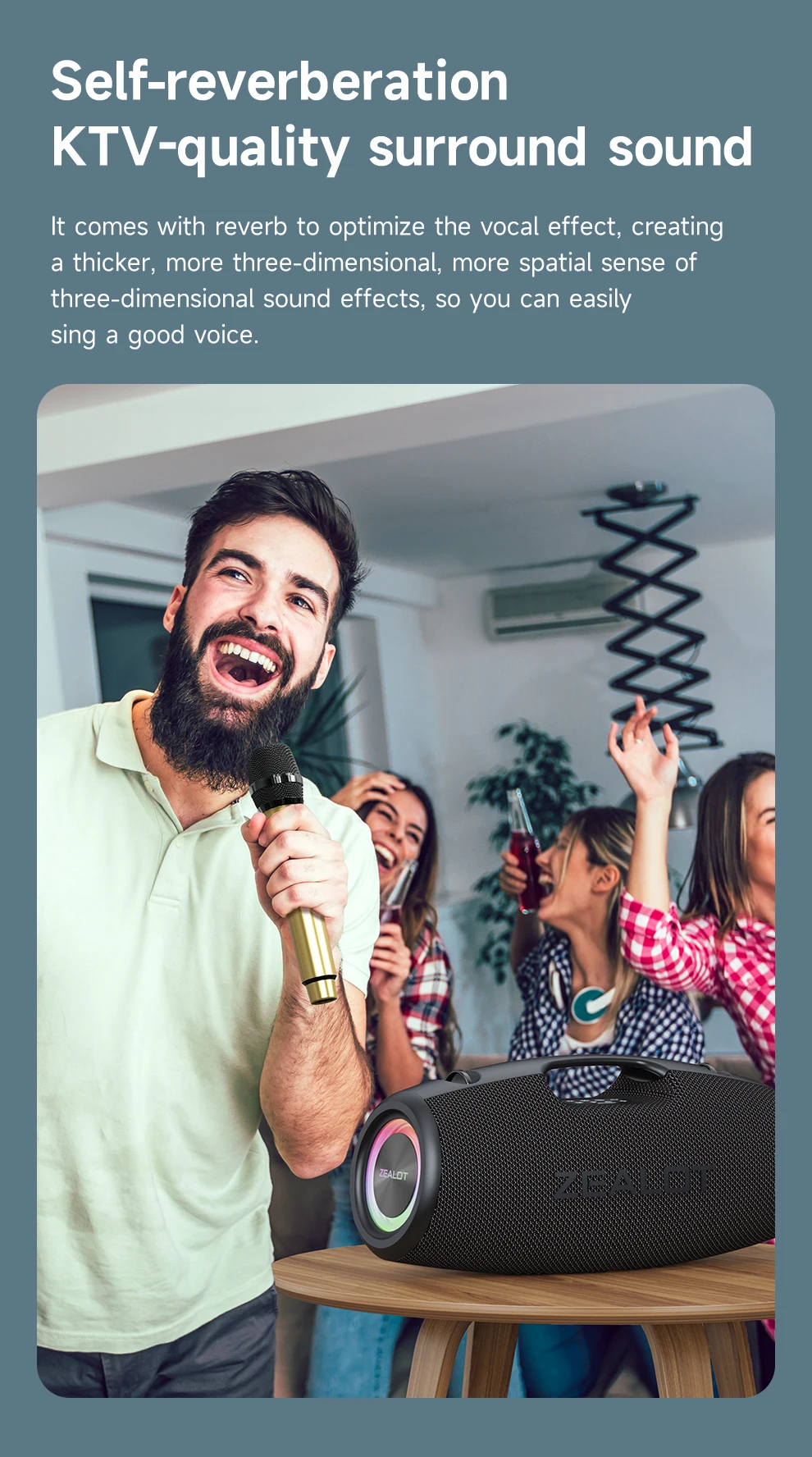 Caixa de Som Portátil para Ambientes Externos ZEALOT S78 com Microfone Sem Fio, 120W, À Prova D'água, Karaokê/Power Bank/TF/AUX/EQ/USB