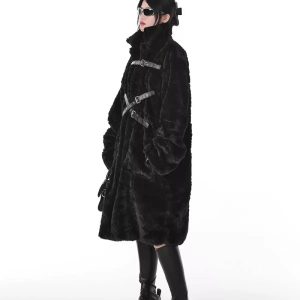 Dark Style Imitation Fur Plush Coat Women’s Mid-length